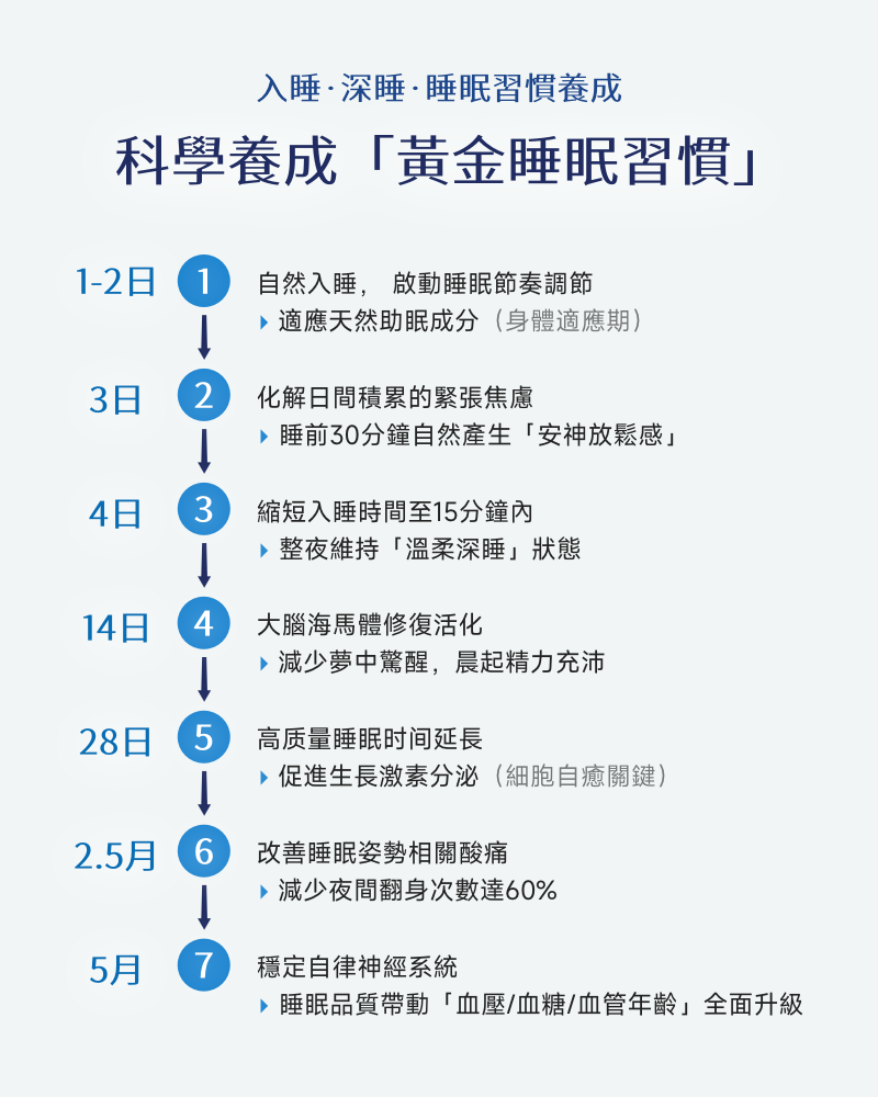 ・Prolongs active ingredient efficacy, delivering 6–8 hours of continuous deep sleep