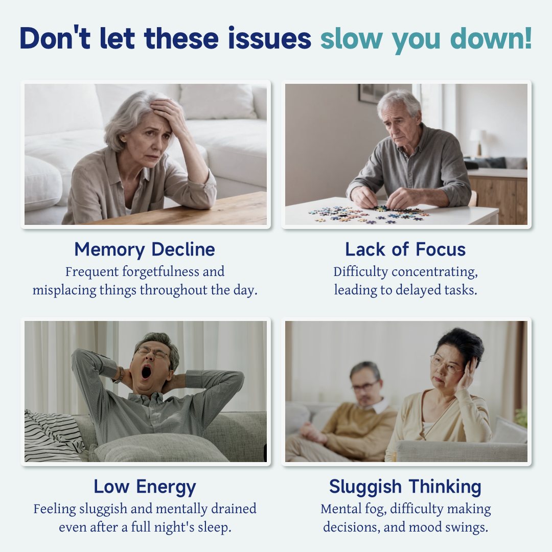 Designed for adults experiencing age-related cognitive decline, forgetfulness, or mental fog, this formula targets the core challenges of weakened neuronal connections and inefficient signal transmission. Powered by “Triple-Layer Brain Revitalization Technology” and “dual-core ingredient synergy”, it supports brain health, clarity, and memory network integrity.