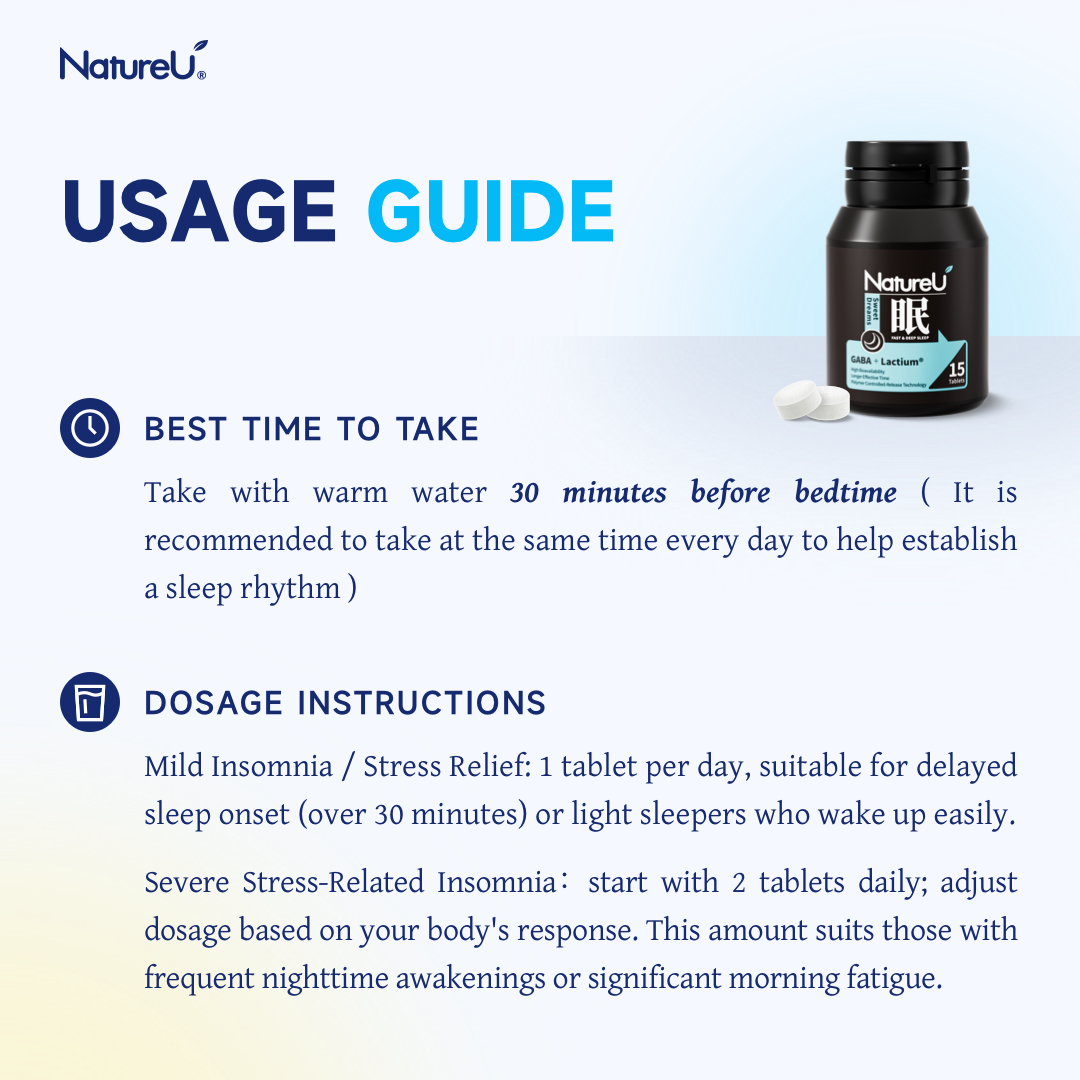 Timing: Take with warm water 30 minutes before bedtime (recommended to take at the same time daily to help regulate sleep rhythm).