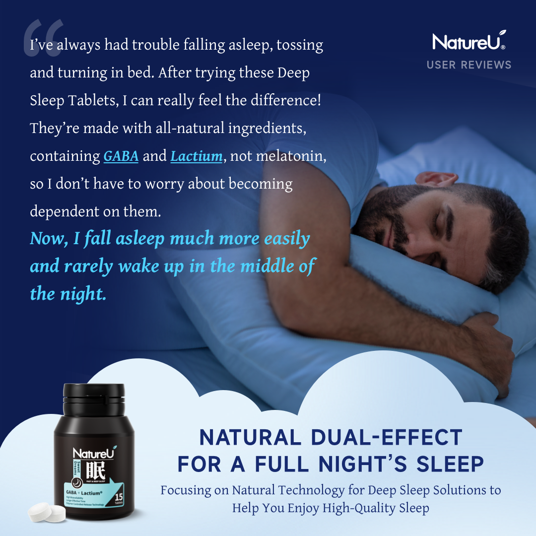 【NatureU Deep Sleep Tablets】6–8 Hours of Deep Sleep · Reset Natural Sleep Rhythm Specifically designed for stress-induced and anxiety-related insomnia, or for those unresponsive to melatonin.