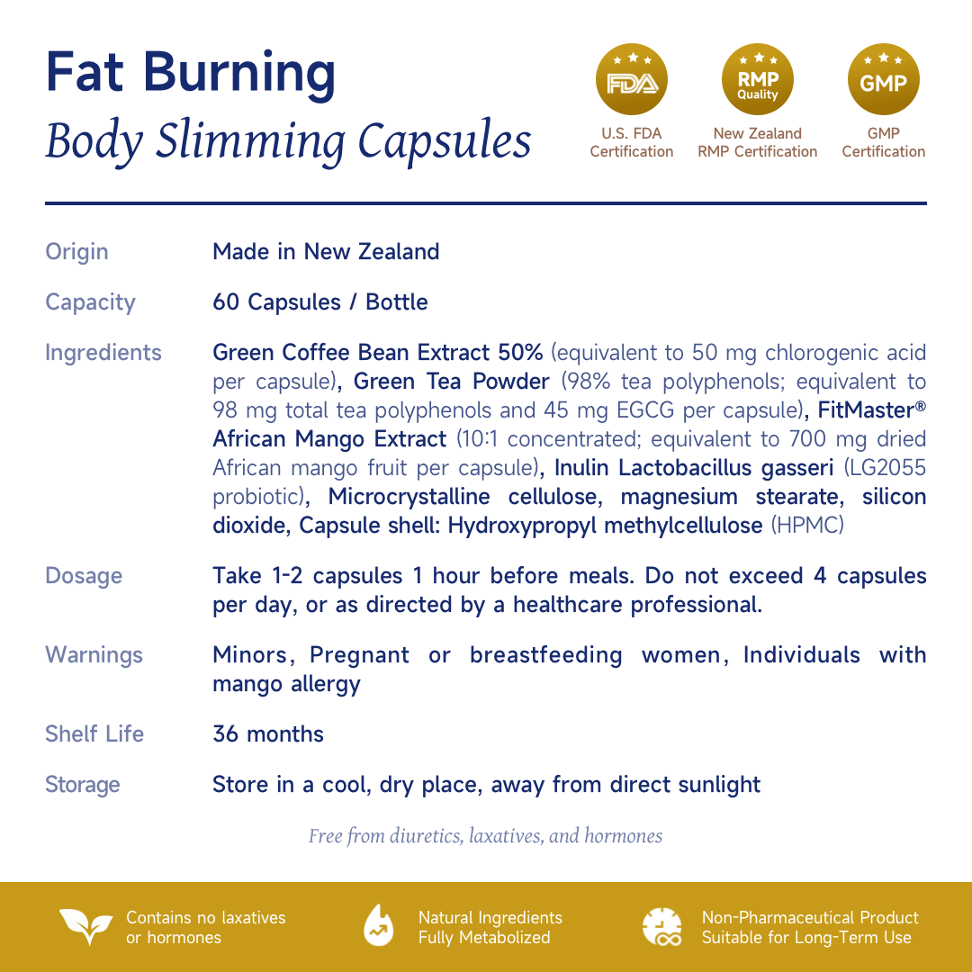 NatureU Fat Burning Body Slimming CapsulesFitMaster® + Green Tea Extract + Green Coffee + LG2055 Probiotics60 Capsules / Bottle